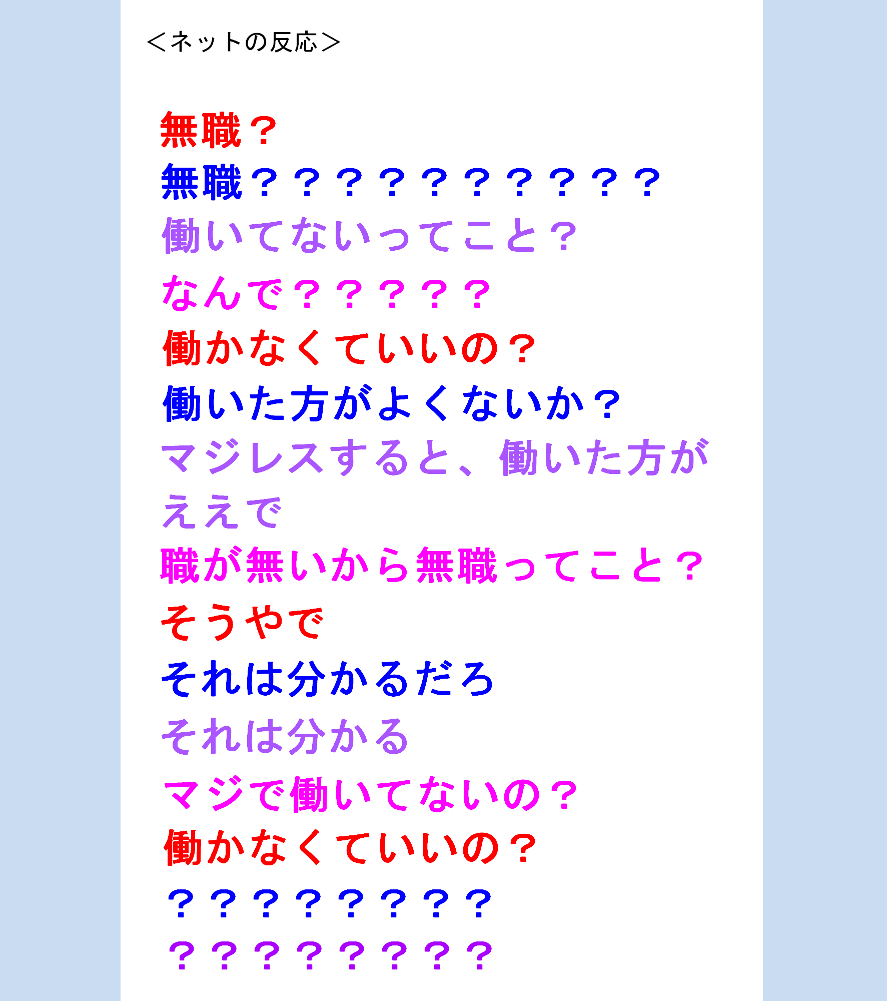 | 5 | 142 | 今度からは「開けるべからず」みたいな、注意書き書かれるんじゃ、ないんですかね??それでも開ける阿呆虫は湧くんだろけど、アホウは文字を読まないから。! 奴らは言葉は見ない、愚かは言葉に目を向けない、言葉は思考のフレーム、額縁、枠組み、私を出してくれ | |